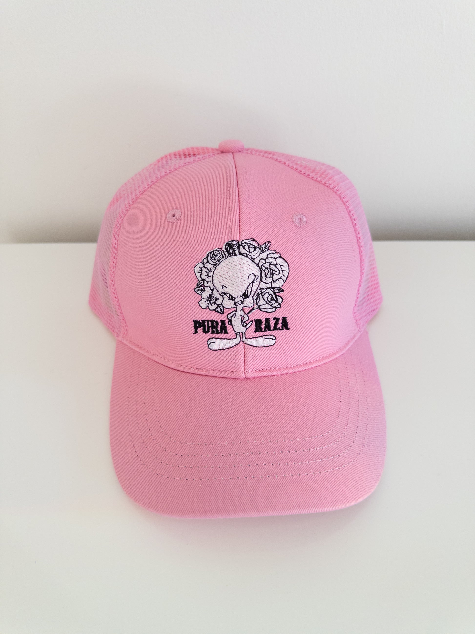 Show off your cultura with a playful twist. This Pura Raza trucker hat features an embroidered Tweety Bird surrounded by roses — a perfect blend of cute, bold, and proudly rooted style.